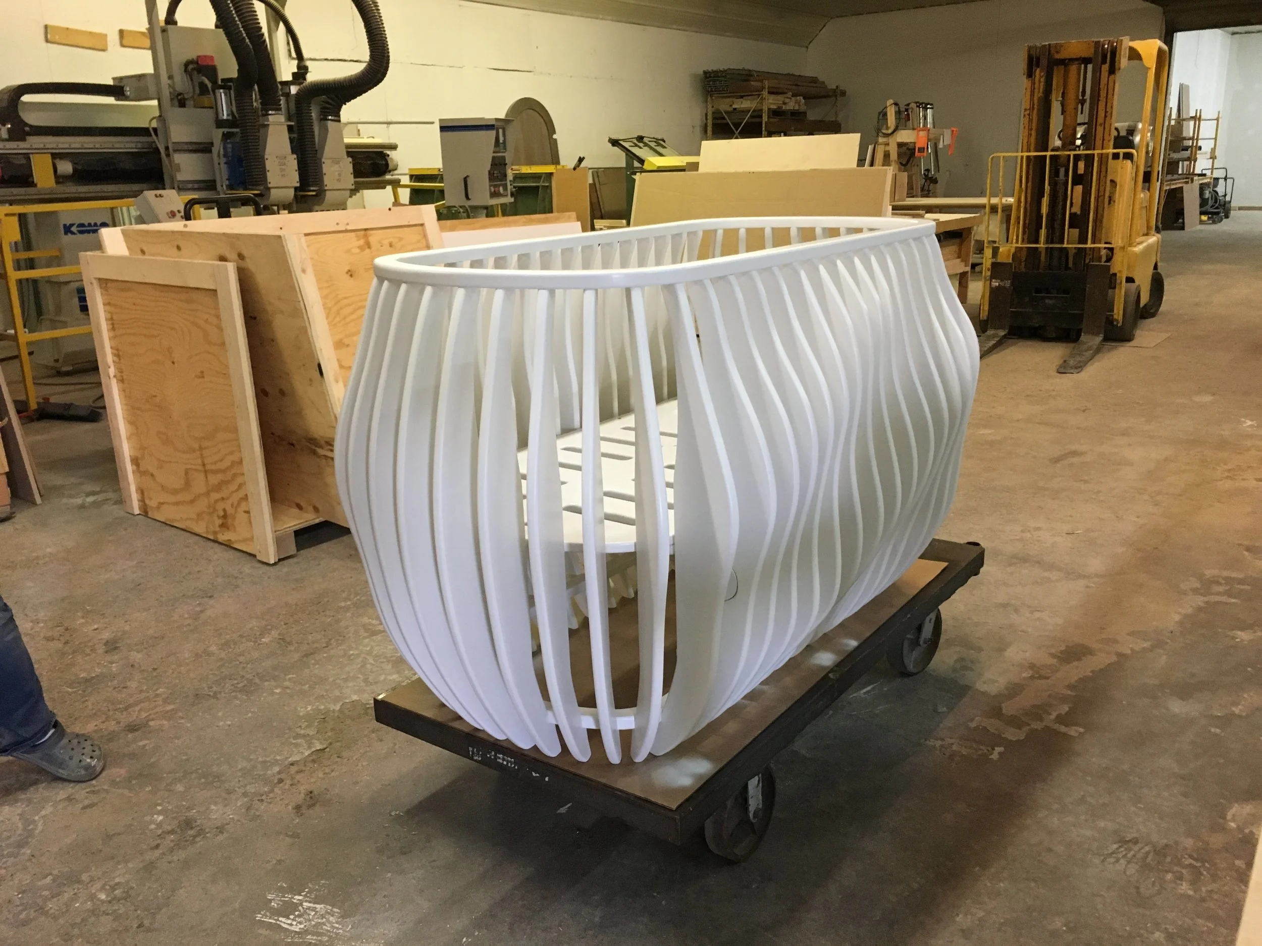 We moved through multiple cycles of prototyping, testing, and engineering, along with several bench‑made, limited‑production runs. Design for manufacturability and assembly was essential, yet we never compromised this crib’s fluid form or its one‑of‑a‑kind details.